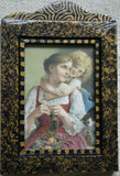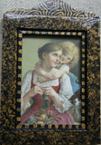 FRAMED PROFESSIONALLY, WITH GLASS, IN A HAND PAINTED FRAME BY A PROFESSIONAL ARTIST WITH DETAILED MOTIFS. READY TO HANG ON THE WALL.