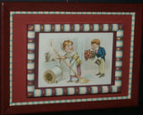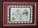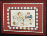 MATTED & FRAMED IN CUTE ORNATE WHIMSICAL HAND PAINTED DOUBLE FRAME (2 FRAMES IN 1) AND UNDER GLASS, FRAME PAINTED BY A PROFESSIONAL ARTIST. CUTSY!