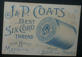 1887 RARE ANTIQUE VICTORIAN TRADE CARD for J.& P. Coats Best Six Cord Sewing Thread.