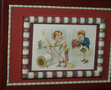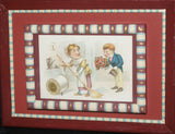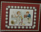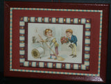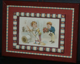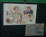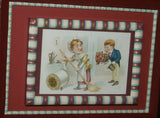 EPHEMERA AMERICANA WHIMSICAL ART: ANTIQUE 1887 FRAMED IN ARTIST HAND PAINTED DOUBLE FRAME & MATTED PROFESSIONALLY, ANTIQUE VICTORIAN ADVERTISING TRADE CARD: J.& P Coats, AD LOVE COURTING (DFPO2T) DESIGNER COLLECTOR COLLECTIBLE DELIGHTFUL WALL DÉCOR