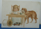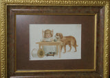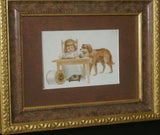EPHEMERA AMERICANA WHIMSICAL ART: 1887 FRAMED & MATTED, ANTIQUE VICTORIAN ADVERTISING TRADE CARD: J.& P. Coats, GIRL & PET DOG GOLDEN RETRIEVER (DFPO2L) DESIGNER COLLECTOR COLLECTIBLE DELIGHTFUL WALL DÉCOR AD GOLDEN RETRIEVER (DFPO2L)
