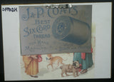 RARE, 1887 AUTHENTIC VICTORIAN AD EPHEMERA TRADE CARD for J.& P. Coats Best Six Cord Sewing Thread: 2 LADIES GOSSIPING IN THE STREET WITH THEIR DOGS. OVER 100 YEARS OLD, ANTIQUE. GREAT CONDITION.