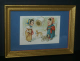 This antique, highly collectible Trade Card, has been professionally matted, framed in a vintage frame, and under glass, then painted by an artist, we try to frame our trade cards in frames that are not new because of their age, so please inspect photos carefully to be satisfied.