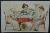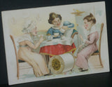 RARE AUTHENTIC, 1880'S ANTIQUE VICTORIAN AD EPHEMERA ORIGINAL TRADE CARD: J.& P. Coats SPOOL COTTON, WOMEN FRIENDS GOSSIPING AROUND A TABLE. OVER 100 YEARS OLD, ANTIQUE. GREAT CONDITION