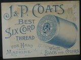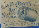 1887 ANTIQUE VICTORIAN TRADE CARD, for J.& P. Coats Best Six Cord Sewing Thread.