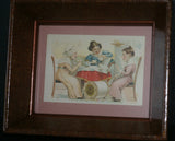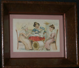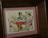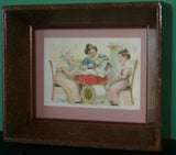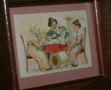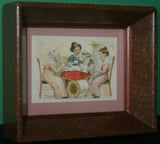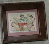 EPHEMERA AMERICANA WHIMSICAL ART: 1887 FRAMED PROFESSIONALLY IN HAND PAINTED FRAME BY ARTIST AND MATTED, ANTIQUE VICTORIAN ADVERTISING TRADE CARD: J.& P Coats, GOSSIPERS WOMEN (DFPO2U) DESIGNER COLLECTOR COLLECTIBLE DELIGHTFUL WALL DÉCOR