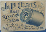 J. & P. Coats is an originally Scottish fine-thread company that was founded by a weaver called James Coats (1774-1857) and his brother Patrick, in Paisley, near Glasgow. The story of Coats is complicated, as it involves British as well as North American based companies, run by various members of the Coats family. It was also closely involved in the activities of the rival Scottish company of Clark.