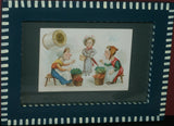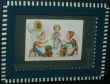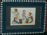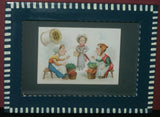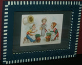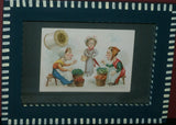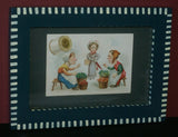 OVER 100 YEARS OLD, ORIGINAL. GREAT CONDITION AND FRAMEDCARDS IN A CUTE FUN HAND PAINTED FRAME BY ARTIST WITH MAT AND GLASS, READY TO HANG ON THE WALL.