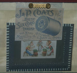 EPHEMERA AMERICANA WHIMSICAL ART, AD: 1887 PROFESSIONALLY FRAMED (IN A HAND PAINTED FRAME BY ARTIST) AND MATTED, ANTIQUE VICTORIAN ADVERTISING TRADE CARD: J.& P Coats MARKET (DFPO2R) DESIGNER COLLECTOR COLLECTIBLE DELIGHTFUL WALL DÉCOR