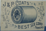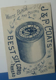 RARE, AUTHENTIC 1887 ORIGINAL VICTORIAN AD EPHEMERA TRADE CARD for J.& P. Coats, Best Six Cord Sewing Thread.