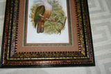 BIRD LITHOGRAPH FRAMED IN UNIQUE ARTIST SIGNED DETAILED HAND PAINTED FRAME WITH 3 HIGH QUALITY ACID FREE MAT