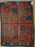 Molas are wonderful traditional prized folk art, hand stitched fabric panels that the Kuna women, from Indian tribes living in the remote San Blas islands off the coast of Panama, wear on the front and back of their blouses. They are masterpieces of time consuming intricate textile art, each created by an artistic accomplished seamstress with imagination, technique, originality and talent and each is unique: they are delicately and minutely hand sewn recreating either an abstract geometric motif reminiscent of body tattoos from their past, or of the brain coral that surrounds the islands, or inspired by kuna history, religion, shamanism or daily life, and by what surrounds the makers such as nature, birds, animals, sea etc… They are highly collectible in the world or textiles and visual arts. We sell them to museums and collectors all over the world.