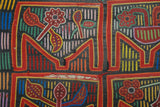 Please inspect carefully, photos speak better than words, this mola is still complete but it has 4 panels and the separations between the panels, which are not as thick as the rest of the multiple layers have weakened over time and the whole mola is starting to separate in the middle and on the top left along the red rectangles that frame each motif, faded also from age. Too fragile to make a pillow out of it but perfect for framing, or it can be divided into 4 panels, one table with flowers each, and framed in 4 small frames. It would be a very nice décor, display on the wall for a lover of older textile art. We are selling it “as is”.