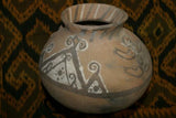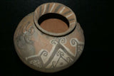 Rare 1980's Vintage Collectible Primitive Hand Crafted Vermasse Terracotta Pottery, Vessel from East Timor Island, Indonesia: 3D Raised Relief Decorative Geometric Motifs colored with natural earthtone Pigments 9.5" x 7.5" (26" Diameter) P27