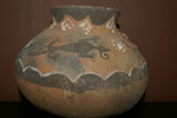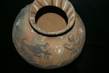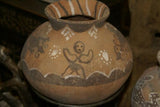Rare 1980's Vintage Collectible Primitive Hand Crafted Vermasse Terracotta Pottery, Vessel from East Timor Island, Indonesia: Raised Relief Decorative Motifs of man & gecko colored with natural earthtone Pigments 7" x 9" (25.5" Diameter) P20