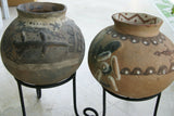 Such extremely decorative urns are often adorned with animalistic motifs, often created in relief, combined with geometrical designs, reminiscent of old American Indian Pottery, and additionally hand-painted with local enhancing natural color pigments.