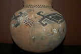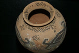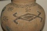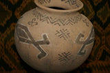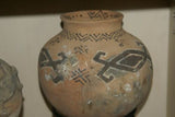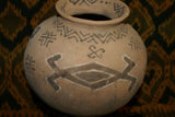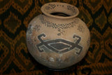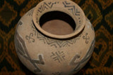 Rare 1980's Vintage Collectible Primitive Hand Crafted Vermasse Terracotta Pottery, Vessel from East Timor Island, Indonesia: Adorned with Decorative Geometric Motifs & colored with natural earth tone Pigments 7.5" x 9", P12