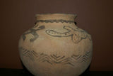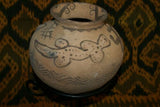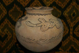Rare 1980's Vintage Collectible Primitive Hand Crafted Vermasse Terracotta Pottery, Vessel from East Timor Island, Indonesia: 3D Raised Relief Decorative Geometric & Crocodile Motifs colored with natural earth tone pigments 8' x 6.5" (23" Diameter) P32