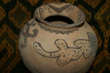 Such extremely decorative urns are often adorned with animalistic motifs, often created in relief, combined with geometrical designs, reminiscent of old American Indian Pottery, and additionally hand-painted with local enhancing natural color pigments.
