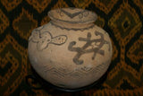 This pot, discovered years ago, was made with a fine red clay mix combined with river sand & rice husk ash sieved through a fly screen and formed by hand, it bears some charcoal black marks on the outside from the burns of bonfires made from cow manure, burns which add to its charm and authenticity. Pots are only created during the dry season.