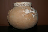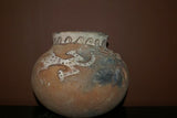 Rare 1980's Vintage Collectible Primitive Hand Crafted Vermasse Terracotta Pottery, Vessel from East Timor Island, Indonesia: 3D Raised Relief Gecko Motifs & Decorative Geometrics colored with natural earthtone pigments 8.5" x 7" (25" Diameter) P38