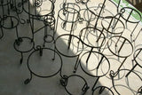 Seen on the first photo and created specifically for us to display pottery, baskets, vases, flower pots (great for orchid pots) and even to make tables with glass tops as we carry many sizes, diameters and heights up to 5ft.