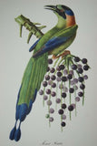 VERY RARE 1960 Rare Descourtilz Limited Edition Original Folio Lithograph Brazilian Bird Plate 60: REICHNOW'S MOTMOT OR MOMOT HOUTOU (Brazil)