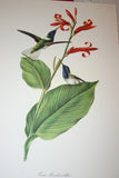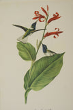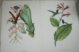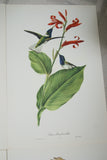 VERY RARE 1960 Rare Descourtilz Limited Edition Original Folio Lithograph Brazilian Bird Plate 51 Jacobin Hummingbird or Oiseau-Mouche a Collier and Red Ginger