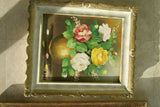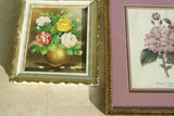 Vintage frames for a shabby look work well with both these pieces of art: the painting is one of a kind and signed. (Original Authentic Hand Painted Art on canvas colorful roses bouquet )
