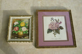 2 Framed 1 Hand-painted canvas Oil signed Roses + 1 Limited Edition Redoute Print