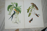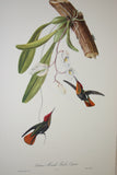 VERY RARE 1960 Rare Descourtilz Limited Edition Original Folio Lithograph Brazilian Bird Plate 53 Ruby & Topaz Hummingbird or Oiseau-Mouche Rubis Topaze with Orchid Flower