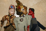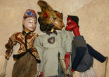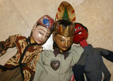 Wooden rod puppet characters were created in family workshops where they are chiseled, carved, painted & dressed in local costume.