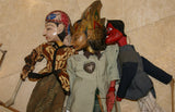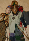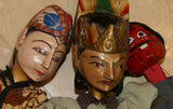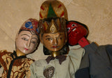 They are being sold at a discounted price as we have very few puppets left for sale, less than 10, all collected 30 years ago, and looking to close that inventory. These entirely handcrafted Javanese traditional puppets are of characters from the amazing Ramayana tales. Around 24” tall from top of head to end of stick or dress for 2 of them and the prangster is 16" tall.