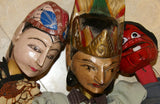Choice between 3 Old Javanese Theater Hand Carved Hand Painted Wooden Wayang Golek, Collector Puppet Dolls, King Rama, Courtesan or Prankster, or all. Yogyakarta, late 1900’s, Indonesia.
