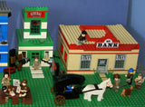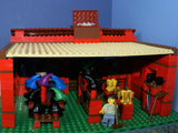 HUGE 32" x 12" x 15" LEGO CUSTOM SET: NEVADA WILD WEST PIONEER TOWN WITH 4 BUILDINGS & 26 MINIFIGURES, FORT LEGOREDO HEADQUARTERS, SHERIFF OFFICE, JAIL, BANK, WITCH' S STORE, HORSES, PROSPECTOR SHOP, WEAPONS, CARD PLAYERS, STAGE COACH (1345 PCS) KIT 8
