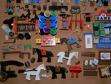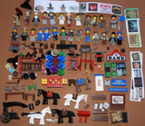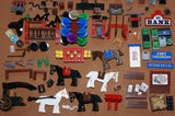 4 TURN-OF-THE-CENTURY BUILDINGS, HUGE AMOUNT OF RARE RETIRED MINIFIGURES (26 MF), ANIMALS & ACCESSORIES, STAGE COACH ETC...