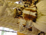 4 Spotted Tiger Cowry (Indo-pacific Coral reefs) from Melanesia, on hand crafted hand twisted cotton pulls.