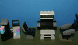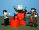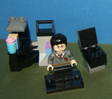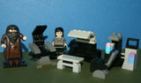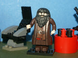7 CUSTOM LEGO BUILDS, 2 NOW RARE (NEW) RETIRED LEGO MINIFIGURES, HAGRID hp111 & HARRY POTTER hp094 FROM SET 4738 “HAGRID’S HUT”, OUTDOOR LABORATORY, ELIXIR POT, LOUNGE RECLINER, SEAT, COUCH, TABLE ETC… YEAR 2010, 86 PIECES TOTAL, ITEM 72.
