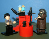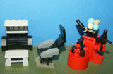 ELIXIR MAKING MACHINE (RED BUILD) WITH SHELVES AND HOLDING CLAMPS ON HINGES SO THAT THEY CAN MOVE UP AND DOWN OR SIDEWAYS, TOOLS, WORKING ARMS, 2 MAGIC POTIONS CONTAINERS WITH LIDS. MANY MOVABLE PARTS: 24 PIECES
