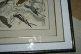 AUTHENTIC ANTIQUE 1839, H.C ORIGINAL HAND COLORING, ENGRAVING FROM BARON CUVIER ANIMAL KINGDOM BIRDS OF PREY, Edinburgh journal of Natural History IN A HAND PAINTED SIGNED CUSTOM FRAME, ALSO MATTED PROFESSIONALLY WITH 6 HIGH QUALITY ACID FREE MATS