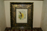 ANTIQUE AUTHENTIC MID 1800’S LITHOGRAPH 19TH C. PARADISEA PAPUANA OR LESSER BIRD OF PARADISE FRAMED IN CUSTOM HAND PAINTED SIGNED FRAME WITH 3 ACID FREE HAND PAINTED MATS