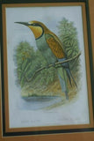 FROM CASSELL BOOK OF BIRDS FROM 1869 ANTIQUE ORIGINAL H.C LITHOGRAPH "EUROPEAN BEE EATER OR MEROPS APLASTER” 19TH CENTURY PRINT PROFESSIONALLY TRIPLE-MATTED AND FRAMED PURPOSELY IN ANTIQUE FRAME COLLECTOR DECOR