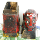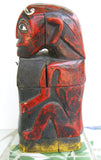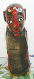 ANTIQUE HAND CARVED HAND PAINTED BETEL BOX FROM WEST JAVA REPRESENTING A KELANA MASK & FIGURE, THE DEMON KING RAHWANA FROM THE WAYANG TOPENG & RAMAYANA EPICS. QUID CONTAINER FOR BETEL HABIT