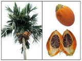 The fruit of the areca palm (Areca catechu) is chewed together with lime and betel pepper as a stimulant by peoples of the East and Papua New Guinea, among other places. Chewing it blackens the teeth and stains the mouth deep red.