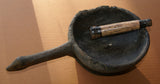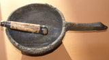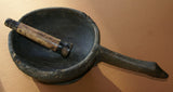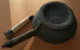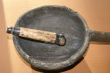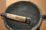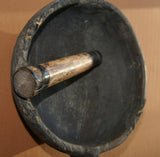 Very rare highly collectible antique wooden dish estimated to be 100 years old or more, collected in Lombok Island, Indonesia. It was used by a Shaman to crush herbs, magic powders, and betel-lime concoctions, with the help of a buffalo bone and wood pounder or crusher that we purchased as well and left it with. The crusher is not as old as the dish. Both were handmade at different times.