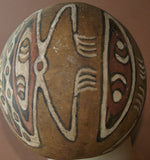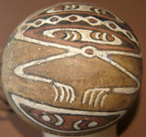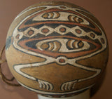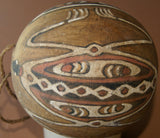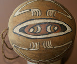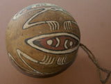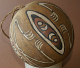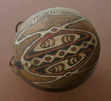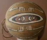 BETEL PARAPHERNALIA: ETHNIC VERY RARE PRIMITIVE LIME GOURD, HAND PAINTED TRADITIONAL MOTIFS CREATED WITH NATURAL PIGMENTS (CHARCOAL & LIME), COLLECTED ON THE PREMISES, LAKE SENTANI, WEST PAPUA, IRIAN JAYA, LATE 1900'S.