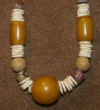 MOROCCO TRIBAL BERBER TOUAREG DOWRY WEDDING ETHNIC BEADS NECKLACE , BRIDE PRICE, WITH AMBER BEADS , WOOD BALLS, CONUS SHELL RINGS, AND COLORFUL GLASS BEADS NECK25 + LONG OTHER COCONUT SHELL NECKLACE