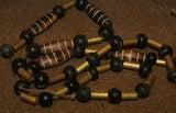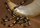 Beautiful Rare Authentic Old Tribal Kina Ceremonial Necklace with hand carved Beads and metal tubes, prized pectoral decoration from the Foi Tribe, highlands of Papua New Guinea.