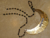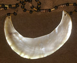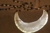 Bride Price Currency, Rare Vintage Ceremonial Moka Kina Shell Necklace (Huge Mother of Pearl Crescent) with Beaded Chain, Pectoral Collected from the Foi Tribe (New guinea), late 1900’s, Highly Collectible. KINA14