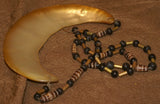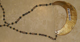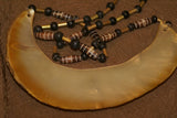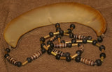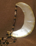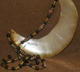 Measures approximately: 7 1/2" x 5 1/2" (size of crescent alone), strands are 16” each, total necklace is 21” long. (Papou Pygmy Tribe Body Art, also valuable currency used as money to this day)